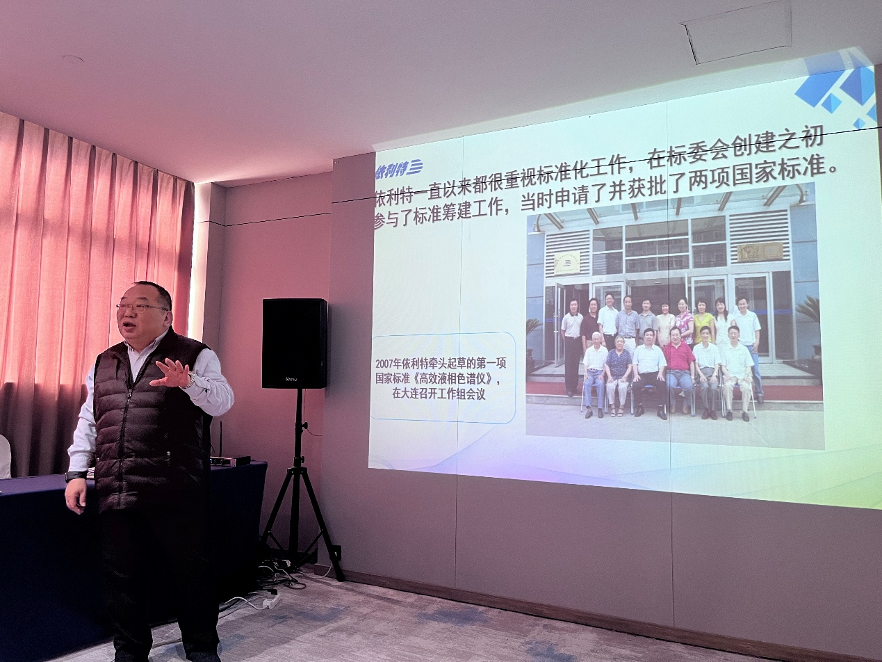 會(huì)議開始,由起草單位蘇州依利特科技集團(tuán)有限公司董事長李彤博士發(fā)表了題為《依利特液相色譜與標(biāo)準(zhǔn)化發(fā)展之路》的開場報(bào)告。李彤博士講述了公司30年來在液相色譜領(lǐng)域的深耕歷程,隨后詳細(xì)介紹了公司以“系列全、產(chǎn)線全、覆蓋全”為特點(diǎn)的產(chǎn)品及服務(wù)體系,并回顧了依利特與分析儀器標(biāo)委會(huì)近20年的深厚合作情誼。