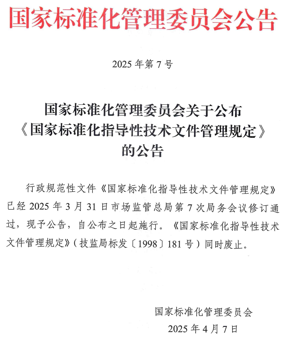 國家標準化管理委員會關(guān)于公布《國家標準化指導(dǎo)性技術(shù)文件管理規(guī)定》的公告.pdf