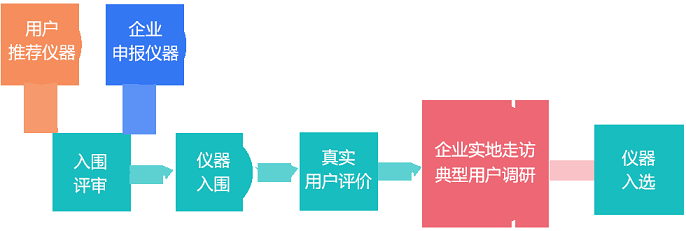 第三屆國產(chǎn)好儀器篩選流程包含以下環(huán)節(jié):活動儀器征集——儀器資質(zhì)審核——用戶入圍評審——入圍儀器的用戶調(diào)研——入選儀器公示——入選儀器公布。