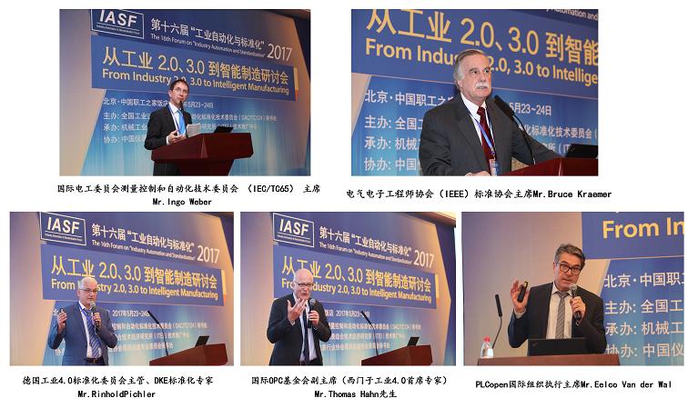 本次會(huì)議特別邀請(qǐng)了來(lái)自國(guó)際電工委員會(huì)測(cè)量控制和自動(dòng)化技術(shù)委員會(huì)(IEC/TC65)、電氣電子工程師協(xié)會(huì)(IEEE)標(biāo)準(zhǔn)協(xié)會(huì)、德國(guó)工業(yè)4.0標(biāo)準(zhǔn)化委員會(huì)、PLCopen國(guó)際組織、德國(guó)電氣電子和信息技術(shù)委員會(huì)(DKE)、OPC基金會(huì)等智能制造相關(guān)的國(guó)際權(quán)威標(biāo)準(zhǔn)化和研究機(jī)構(gòu)的知名專(zhuān)家做專(zhuān)題報(bào)告,與參會(huì)者共同分享和探討了智能制造相關(guān)領(lǐng)域的國(guó)際技術(shù)動(dòng)態(tài)和實(shí)踐經(jīng)驗(yàn)。