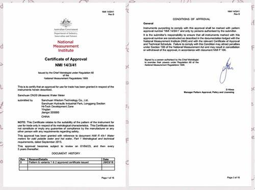 3月28日,三川智慧LXCY超聲波遠(yuǎn)傳水表系列正式獲得澳大利亞NMI(國家計量院)認(rèn)證,標(biāo)志著該系列水表性能和功能通過了嚴(yán)格的NMI測試,為公司拓展澳洲水表市場乃至全球水表市場奠定了基礎(chǔ)。