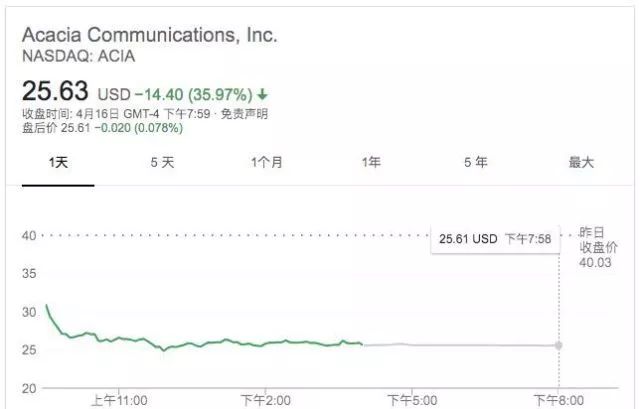 當日,通訊元器件制造商Acacia通信股價暴跌35.97%;電信和數通市場光器件、模塊和子系統供應商Oclaro股價下跌15.2%;光纖產品生產和銷售商Lumentum Holding股價下跌9.1%。
