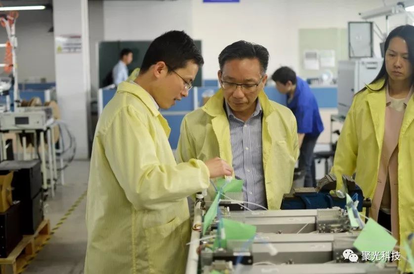 梁主任和鄧主任一行首先參觀了公司展廳和大氣產品生產線,聚光科技大氣分析產品線總監黃偉詳細介紹了公司的發展歷程、業務領域及設備生產情況。參觀生產線和實驗室時,梁主任和鄧主任對聚光科技大氣AQMS-3000微型環境空氣監測系統、PFS-100光解光譜儀和車載TOF-MS VOCs分析系統等產品表現出了濃厚的興趣。
