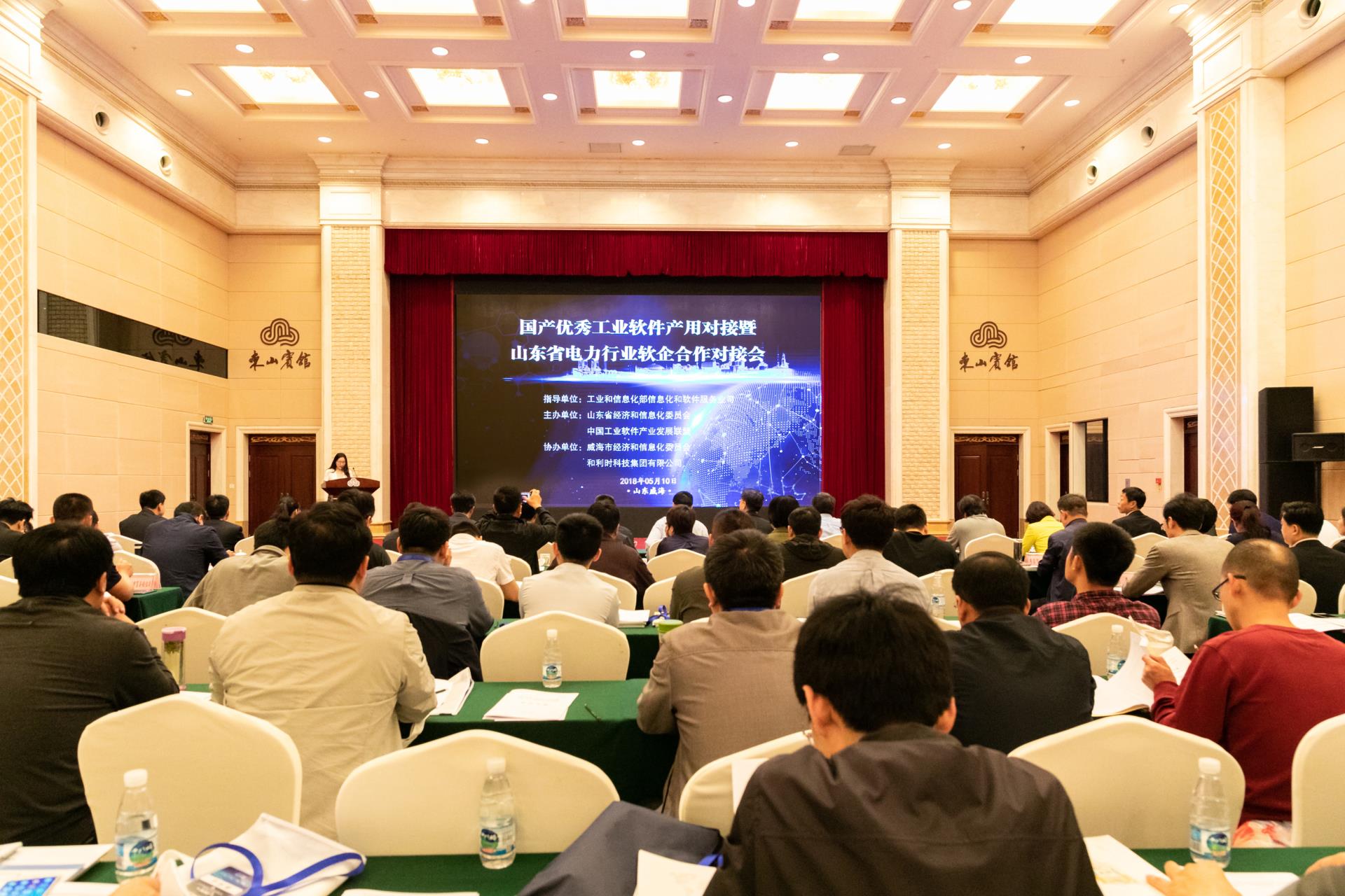 2018 年5月10日,國產優秀工業軟件產用對接活動暨山東省電力行業軟企合作對接會于威海召開。會議由工業和信息化部信息化和軟件服務司指導,山東省經濟和信息化委員會、中國工業軟件產業發展聯盟共同主辦,威海市經濟和信息化委員會、和利時科技集團有限公司聯合協辦。工業和信息化部信息化和軟件服務業司副司長李冠宇、山東省經濟和信息化委員會副主任廉凱出席會議并講話,威海市經濟和信息化委員會副主任孫玉忠、和利時集團副總經理何春明共同出席會議,各市經信委、30家山東省軟件企業和近100家電力企業共260余人參加了會議。