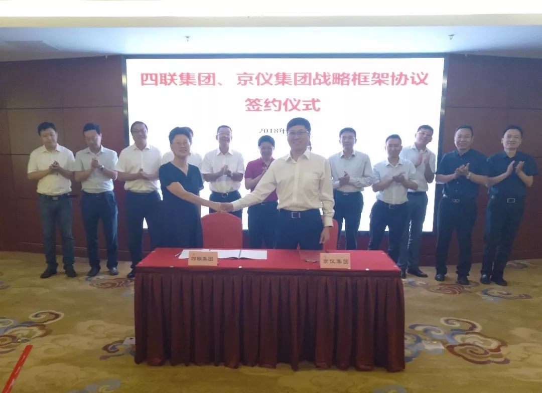 6月21日,京儀集團(tuán)與四聯(lián)集團(tuán)簽署戰(zhàn)略合作框架協(xié)議。京儀集團(tuán)黨委書記、董事長高玉清,總經(jīng)理秦海波、副總經(jīng)理盧繼偉、李源,四聯(lián)集團(tuán)黨委書記、董事長向曉波,監(jiān)事會(huì)主席周偉、財(cái)務(wù)總監(jiān)卿玉玲,中國儀器儀表行業(yè)協(xié)會(huì)秘書長李躍光出席簽約儀式。
