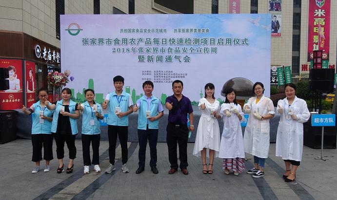 7月5日上午,張家界市人民政府副市長、市食安委副主任鄒菊芳在市食安委于永定區(qū)中商廣場舉辦的“張家界市食用農(nóng)產(chǎn)品每日快速檢測項目啟用儀式暨新聞通氣會”上宣布張家界市食用農(nóng)產(chǎn)品安全每日快速檢測項目正式啟用,永定、武陵源城區(qū)設立的9個快檢實驗室已全面開展快速檢測工作。