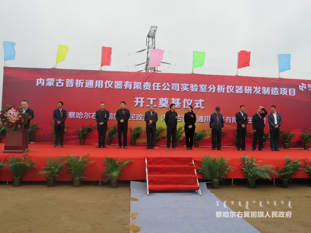 近期,在察右前旗京蒙合作產業園 “內蒙古普析通用儀器有限責任公司實驗室分析儀器研發制造”項目舉行隆重的開工奠基儀式,市人民政府副市長王國相,旗人民政府旗長劉飛明,內蒙古普析通用儀器有限責任公司董事長田禾出席開工奠基儀式,旗委常委、政府常務副旗長趙建軍主持儀式。