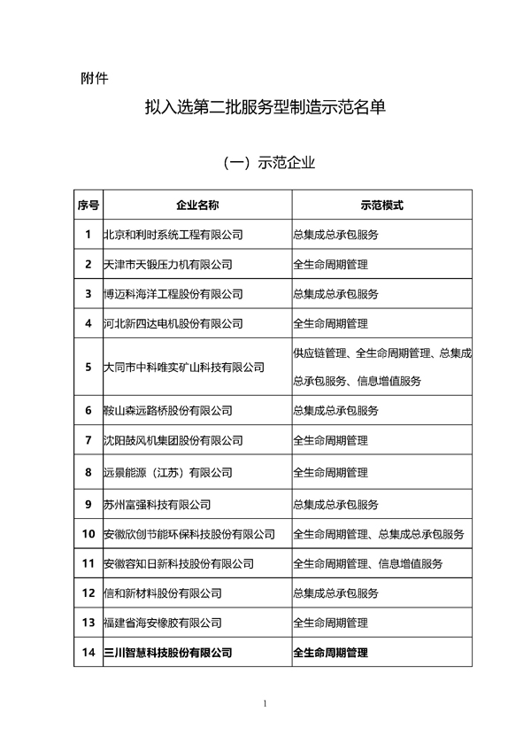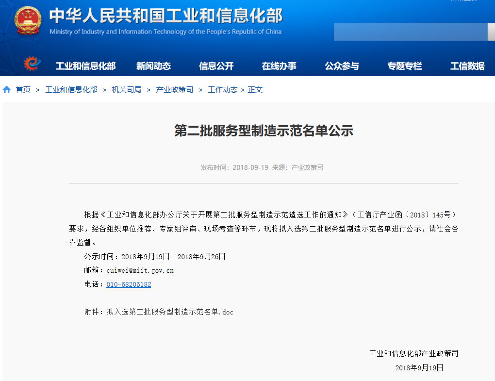 9月19日,根據《工業和信息化部辦公廳關于開展第二批服務型制造示范遴選工作的通知》(工信廳產業函〔2018〕145號),工信部官網公示第二批服務型制造示范名單,北京和利時系統工程有限公司以“總集成總承包服務”、三川智慧科技股份有限公司以“全生命周期管理”示范模式成功入圍。