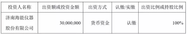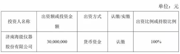 日前,濟南海能儀器股份有限公司(以下簡稱“海能儀器”)發布對外投資公告:根據公司發展戰略和經營需要,為完善和優化公司產業布局,海能儀器擬以貨幣出資方式設立全資子公司蘇州海能科學儀器有限公司(名稱暫定,以市場監督管理部門核準為準),注冊資本為人民幣3,000 萬元;擬以貨幣出資方式設立全資子公司蘇州新儀科學儀器有限公司(名稱暫定,以市場監督管理部門核準為準),注冊資本為人民幣3,000萬元。
