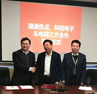 2018年12月25日下午,滴滴優點科技(深圳)有限公司(以下簡稱“滴滴優點”)與深圳市科陸電子科技股份有限公司(以下簡稱“科陸”)、深圳市車電網絡有限公司(以下簡稱“車電網”)三方戰略合作簽約儀式在科陸大廈舉行。滴滴優點董事長、CEO張革初先生,技術總監左星原先生,科陸董事長饒陸華先生,副總裁桂國才先生,能源智能化事業部總經理易明先生以及車電網總經理王京女士等出席簽約儀式。