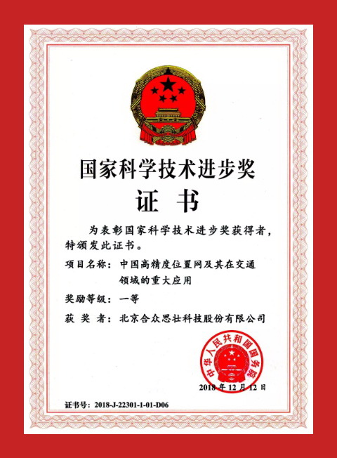 2019年1月8日上午,中共中央、國務院在北京隆重舉行2018年度國家科學技術獎勵大會。習近平、李克強、王滬寧、韓正等黨和國家領導人出席會議活動。北京合眾思壯科技股份有限公司(股票代碼:002383)參與完成的“中國高精度位置網及其在交通領域的重大應用”項目,榮獲國家科技進步一等獎。