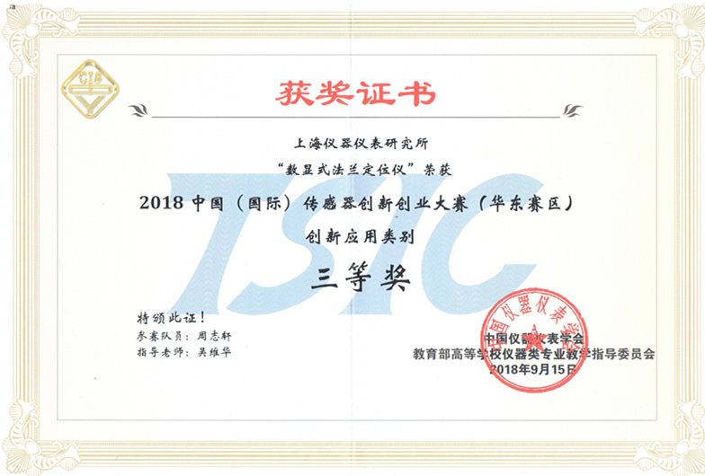 上儀所榮獲2018中國(國際)傳感器創新創業大賽三