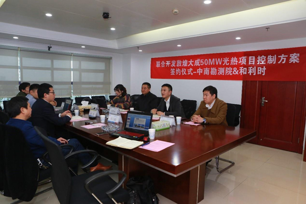 2019年2月21日,杭州和利時自動化有限公司(以下簡稱“杭和”)與中國電建集團(tuán)中南勘測設(shè)計研究院有限公司(以下簡稱“中南院”)舉辦了“聯(lián)合開發(fā)世界首座熔鹽線性菲涅爾式太陽能光熱發(fā)電商業(yè)化示范電站(敦煌大成50兆瓦光熱發(fā)電項目)控制方案合作協(xié)議”簽約儀式。雙方將整合各自優(yōu)勢資源,增強雙方團(tuán)隊協(xié)作能力,針對國內(nèi)光熱電站全廠聯(lián)動控制領(lǐng)域的空白及反饋滯后、多因素耦合的控制難點,共同負(fù)責(zé)儲換熱系統(tǒng)及全廠聯(lián)動控制策略的制定,提升我國在光熱電站全廠聯(lián)動控制領(lǐng)域的競爭力。中南院副總經(jīng)理陳鵬、新能源院院長劉小松、新能源院熱電所副所長徐燦君、新能源院熱電所副所長王佳明,杭和總裁助理劉德成、新能源行業(yè)部總經(jīng)理沈長虹等領(lǐng)導(dǎo)參加了簽約儀式,見證這一重要時刻。