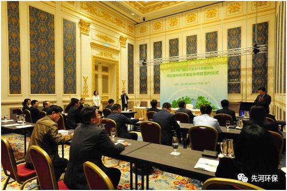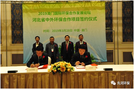 當日下午,“2019澳門國際環保合作發展論壇 河北省中外環保合作項目簽約儀式”在澳門巴黎人酒店隆重舉行,高建民廳長一行出席先河環保戰略合作簽約項目座談會暨合作簽約儀式。