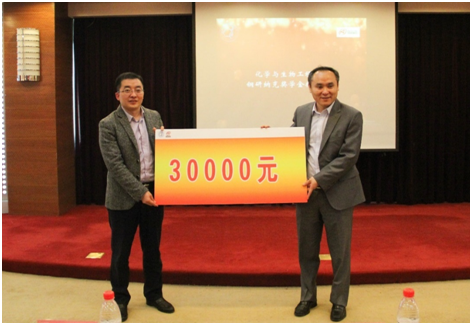 典禮上,鋼研納克黨委書記、董事長高宏斌做題為《從理學(xué)之美到職業(yè)之美》的報(bào)告,代表鋼研納克向北京科技大學(xué)化學(xué)與生物工程學(xué)院捐贈三萬元獎學(xué)金,與曾芳書記現(xiàn)場為獲獎學(xué)生頒發(fā)獎狀和獎學(xué)金。