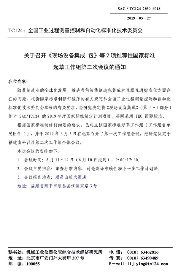 2019年6月11日-14日,由全國工業(yè)過程測量控制和自動化標準化技術(shù)委員會發(fā)起的《現(xiàn)場設備集成》(第 4~5部分《現(xiàn)場設備集成包》和《現(xiàn)場設備集成信息模型》)等兩項國家智能制造標準第二次會議在福建順昌虹潤公司隆重召開,其中《現(xiàn)場設備集成包》一項標準由虹潤公司主持起草制定。