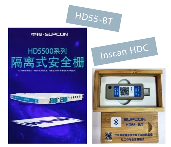 為改變?cè)械木€纜通訊方案操作麻煩且易出錯(cuò)的弊端,2019年5月,中控正式發(fā)布了安全柵藍(lán)牙配置組態(tài)產(chǎn)品——HD55-BT及安卓APP Inscan HDC。