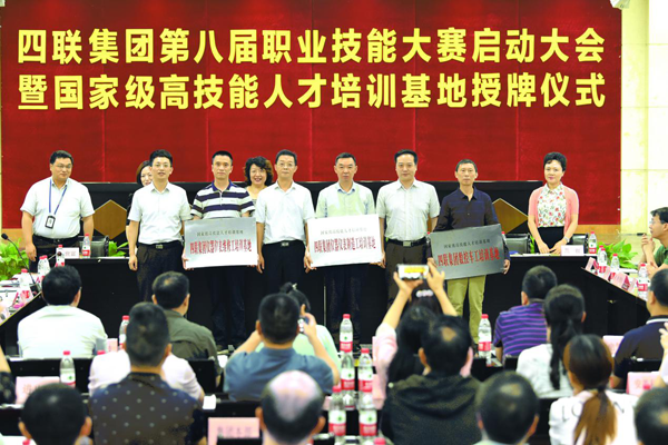 近日,四聯(lián)集團(tuán)舉行國(guó)家級(jí)高技能人才培訓(xùn)基地授牌儀式,四聯(lián)集團(tuán)黨委副書(shū)記、紀(jì)委書(shū)記、工會(huì)主席黃治華、副總經(jīng)理陳紅兵,四川儀表工業(yè)學(xué)校黨委書(shū)記柴彬堂為三個(gè)基地授牌。