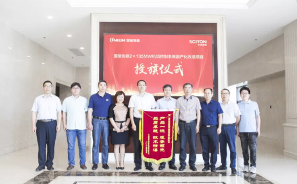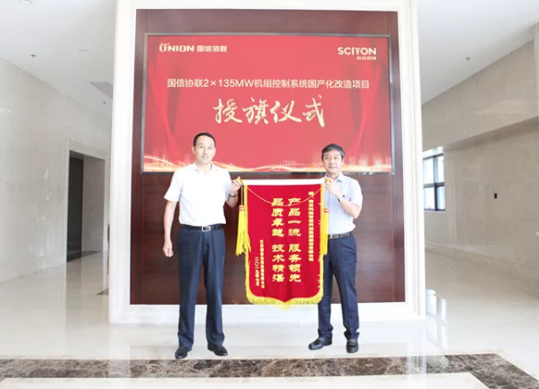 2019年8月1日,江蘇國(guó)信協(xié)聯(lián)能源有限公司總經(jīng)理宗偉剛、總工程師芮志清、檢修部部長(zhǎng)談三勤、熱控專(zhuān)工蔣勇一行親赴科遠(yuǎn)智慧,就國(guó)信協(xié)聯(lián)2×135MW機(jī)組控制系統(tǒng)國(guó)產(chǎn)化改造項(xiàng)目,授予科遠(yuǎn)智慧“產(chǎn)品一流、服務(wù)領(lǐng)先、品質(zhì)卓越、技術(shù)精湛”錦旗。科遠(yuǎn)智慧董事長(zhǎng)劉國(guó)耀、總裁胡歙眉、控制系統(tǒng)工程中心總經(jīng)理方正、江蘇項(xiàng)目部經(jīng)理姚風(fēng)偉、主任工程師徐龍乾、銷(xiāo)售經(jīng)理王琦等出席授旗儀式。