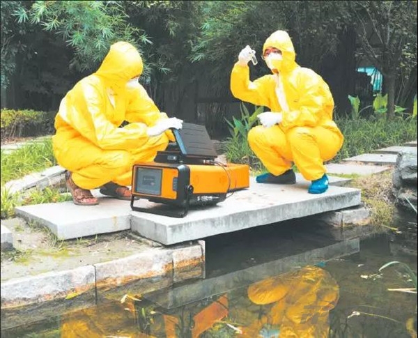 →在浙江省杭州市濱江區(qū),水質(zhì)監(jiān)測(cè)人員通過Mars-400設(shè)備精準(zhǔn)監(jiān)測(cè)水質(zhì)各項(xiàng)指標(biāo),