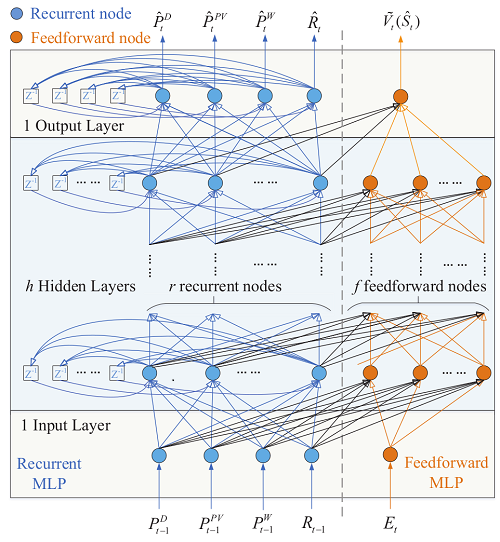 在題為Dynamic Energy Management of a Microgrid using Approximate Dynamic Programming and Deep Recurrent Neural Network Learning的研究論文中,智能微電網(wǎng)課題組在國際上首次提出了一種基于深度強化學(xué)習(xí)技術(shù)的微電網(wǎng)實時能源優(yōu)化方法。該方法考慮可再生能源出力的隨機性及其對電網(wǎng)交流潮流約束的影響,利用一個深度遞歸神經(jīng)網(wǎng)絡(luò)對微電網(wǎng)當(dāng)前運行狀態(tài)進行特征提取,并在保證微電網(wǎng)安全性的基礎(chǔ)上,對微電網(wǎng)各分布式發(fā)電單元進行調(diào)度,實現(xiàn)微電網(wǎng)運行的實時優(yōu)化控制。此外,相對于目前的微電網(wǎng)運行控制方法,提出的方法完全是基于學(xué)習(xí)的,不需要對可再生能源出力進行預(yù)測建模,表現(xiàn)出很好的自適應(yīng)性。該工作不僅是智能電網(wǎng)優(yōu)化調(diào)度研究中新的探索和突破,也為未來應(yīng)用人工智能技術(shù)推動智能電網(wǎng)發(fā)展提供了新的研究思路。