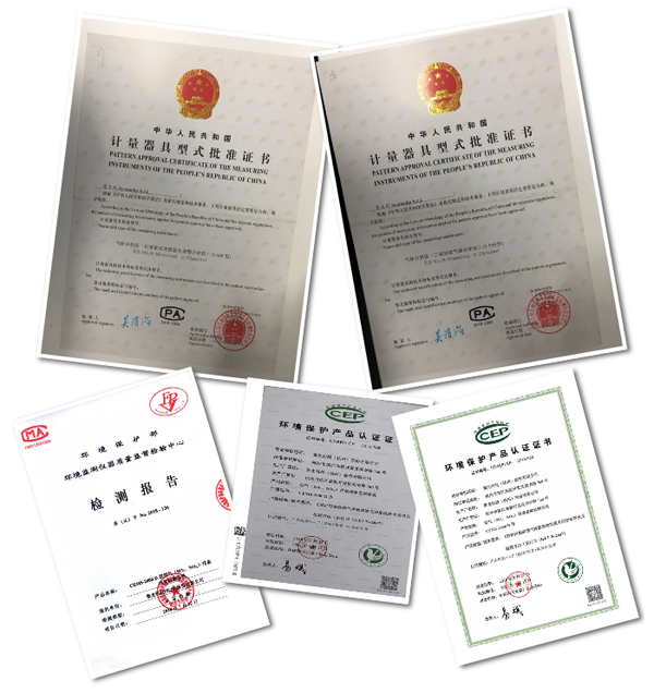 CEMS-2000 D產品已取得中國環境保護產品認證證書(CCEP認證)和生態環境部環境監測儀器設備檢驗檢測中心出具的適應性檢測合格報告,S-600及S-500型核心主分析儀分別取得計量器具型式批注證書(CPA認證)。