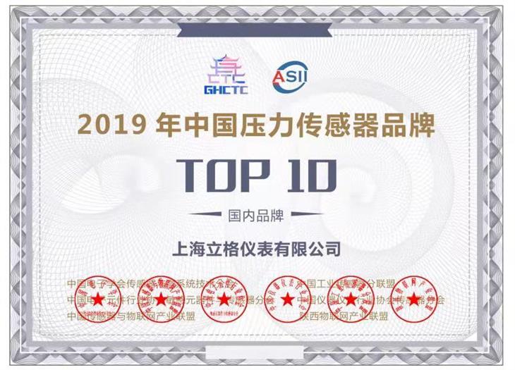上海立格儀表榮獲中國壓力傳感器國內品牌TOP10獎