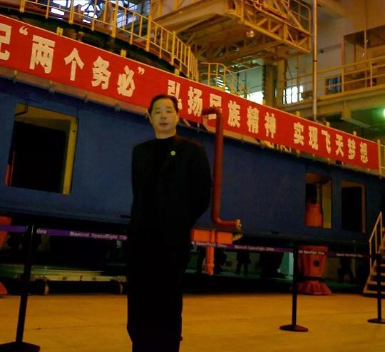 神五發射期間,胡成中是唯一受邀現場觀禮的民營企業嘉賓。圖為其在酒泉衛星發射中心留影