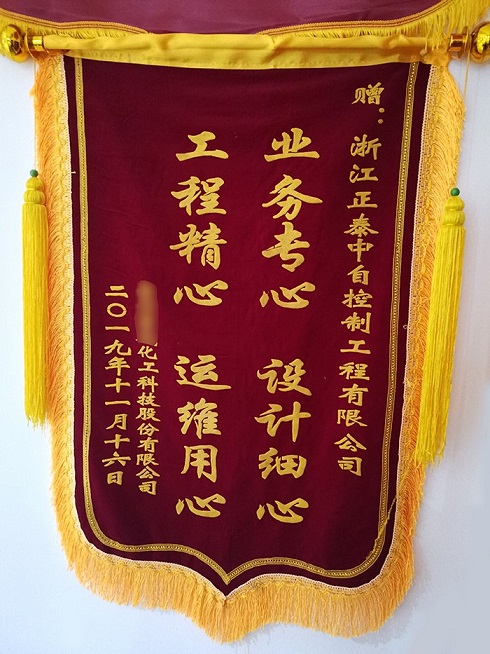 近日,由正泰中自負(fù)責(zé)實施的某化工企業(yè)自動化安全升級改造項目一次性開車成功。一面錦旗贈予公司,表達(dá)了對“中自人”服務(wù)精神、工程能力、業(yè)務(wù)水平的贊賞和肯定。