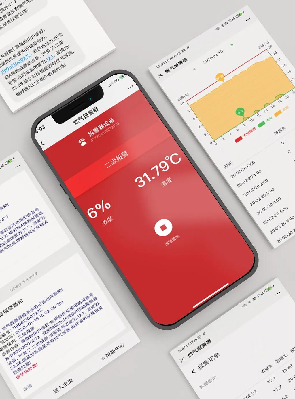 報(bào)警器會(huì)不間斷地采集當(dāng)前環(huán)境中的氣體濃度數(shù)據(jù),并存儲(chǔ)每個(gè)小時(shí)內(nèi)的最大值,用戶可以通過微信查詢到設(shè)備的歷史數(shù)據(jù)和報(bào)警信息,通過數(shù)據(jù)能夠清晰地勾勒出家庭的用氣情況,從而能提前發(fā)現(xiàn)潛在的泄漏風(fēng)險(xiǎn),及時(shí)處理,避免醞釀成事故。