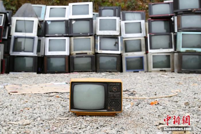 工人在搬運廢舊電視。中新社 記者 賀俊怡 攝