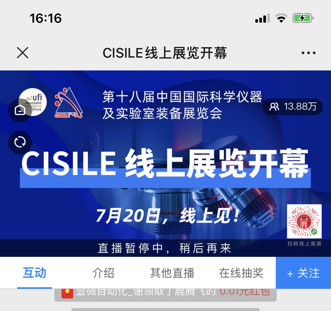 截至2020年7月20日14:00,線上直播活動(dòng)CISILE官方直播入口觀看人次超過(guò)11萬(wàn),未計(jì)入中國(guó)化工儀器網(wǎng)、分析測(cè)試百科網(wǎng)的轉(zhuǎn)播觀看人次。