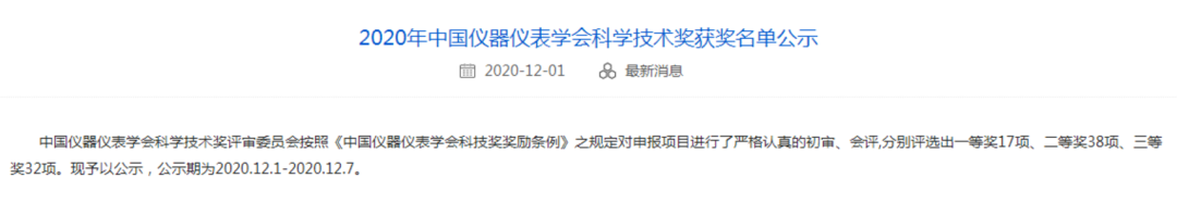 0年中國(guó)儀器儀表學(xué)會(huì)科技進(jìn)步三等獎(jiǎng)