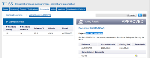 2020年12月8日,我國(guó)主導(dǎo)制定的國(guó)際標(biāo)準(zhǔn)《工業(yè)自動(dòng)化控制系統(tǒng)安全一體化生命周期要求》正式發(fā)布,編號(hào)為IEC PAS 63325:2020。
