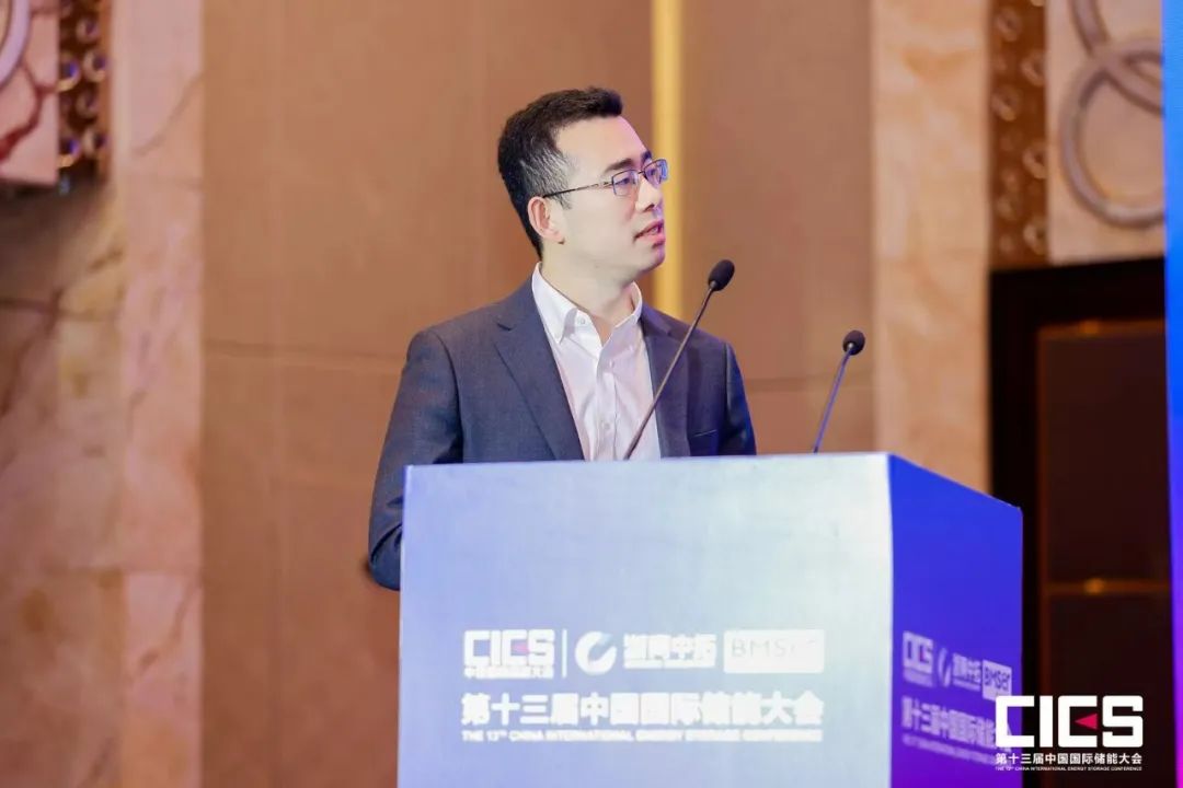 大會期間,江蘇林洋億緯儲能科技有限公司研發總監何振宇受邀出席并圍繞新型電力系統的新型儲能電站系統集成及運營關鍵技術發表主題演講。