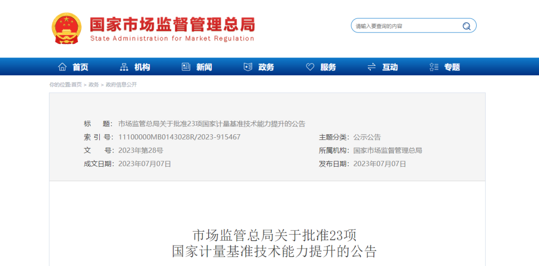 7月7日,國家市場監(jiān)督管理總局發(fā)布關于批準23項國家計量基準技術能力提升的公告,批準“612nm波長基準裝置”“表面粗糙度基準裝置”等23項國家計量基準技術能力提升,頒發(fā)新的國家計量基準證書,撤銷相應的原國家計量基準證書。具體如下。