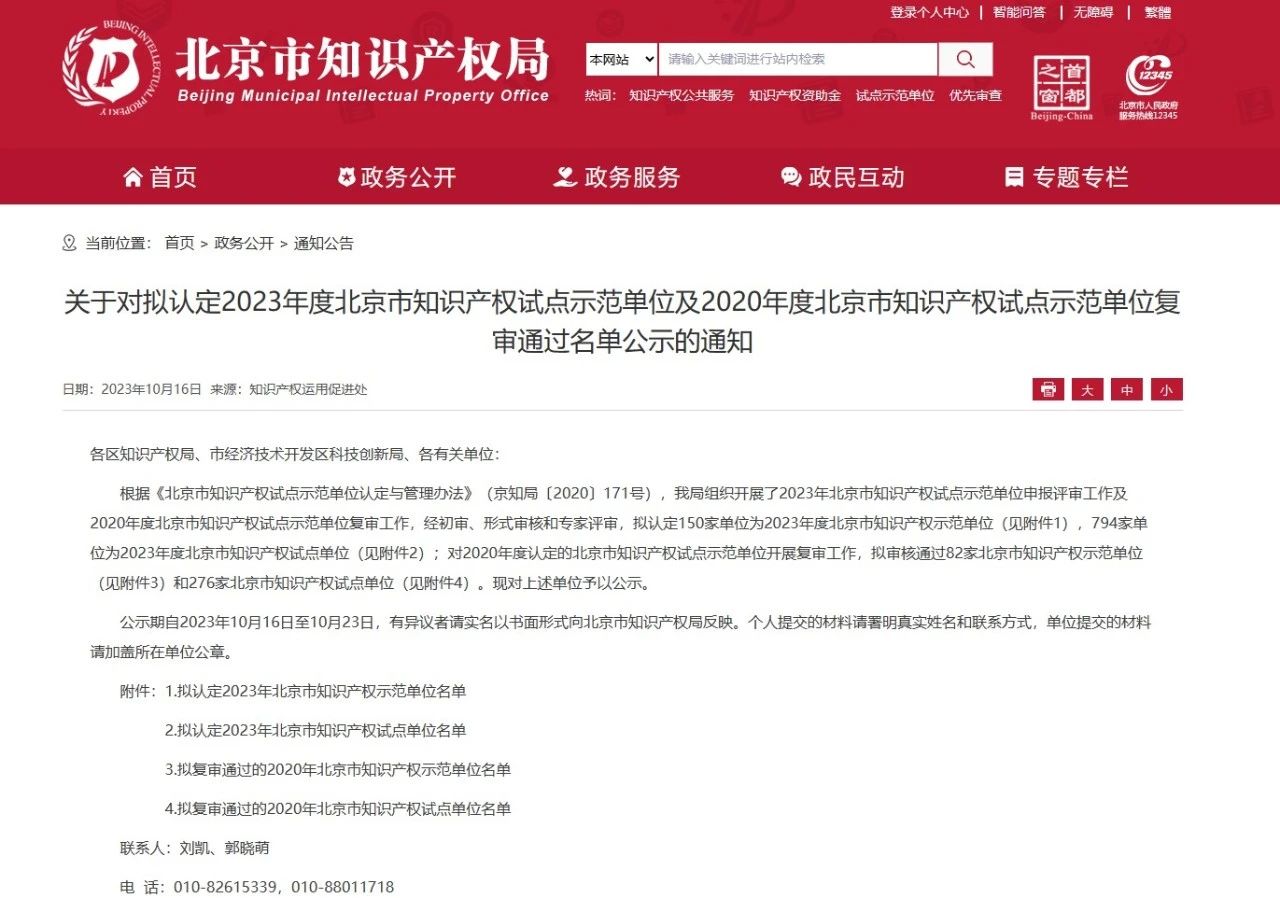 北京市知識產權試點示范單位