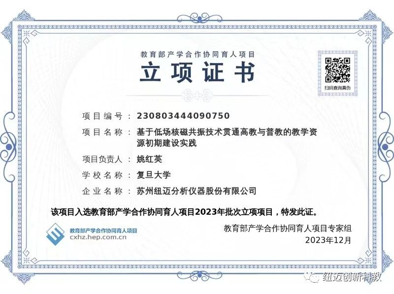 復(fù)旦大學(xué)物理系作為國家理科科學(xué)研究與教學(xué)人才培養(yǎng)基地,是國家首批設(shè)立博士點和博士后流動站的單位,被列為國家“211工程”重點建設(shè)學(xué)科和國家“985工程”重中之重科技創(chuàng)新平臺。早在2008年,復(fù)旦大學(xué)物理系便開始與紐邁合作,在產(chǎn)品技術(shù)開發(fā)及實踐教學(xué)方面已有多年積累,這為本次項目奠定了良好的合作基礎(chǔ)。
