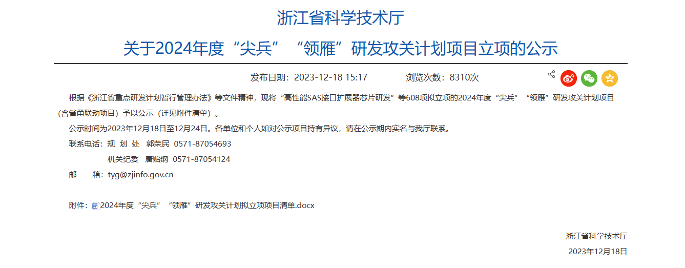 “尖兵”“領雁”研發攻關計劃是浙江省重大科技專項,由省級財政資金設立,面向世界科技前沿、面向經濟主戰場、面向國家和浙江重大需求、面向人民生命健康,開展重點技術領域的前沿科學問題研究、重大關鍵核心技術攻關、重大社會公益性研究、重大國際科技合作等研究活動的科技計劃。