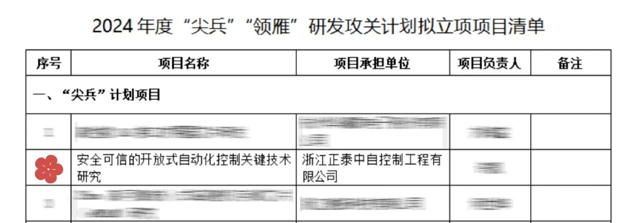 近日,浙江省科學技術廳公布《關于下達2024年度“尖兵領雁+X”研發攻關計劃第一批項目的通知》。由正泰中自牽頭承擔的《安全可信的開放式自動化控制關鍵技術研究》項目成功入選,其核心產品“泰和”系統還入編了國家級高校教材應用案例。