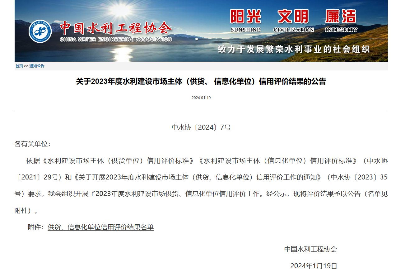 近日,中國水利工程協(xié)會(huì)發(fā)布了《關(guān)于2023年度水利建設(shè)市場主體信用評(píng)價(jià)結(jié)果的公示》,正泰中自榮獲2023年度水利建設(shè)市場主體信用評(píng)價(jià)AAA級(jí) 供貨、信息化單位 評(píng)定!