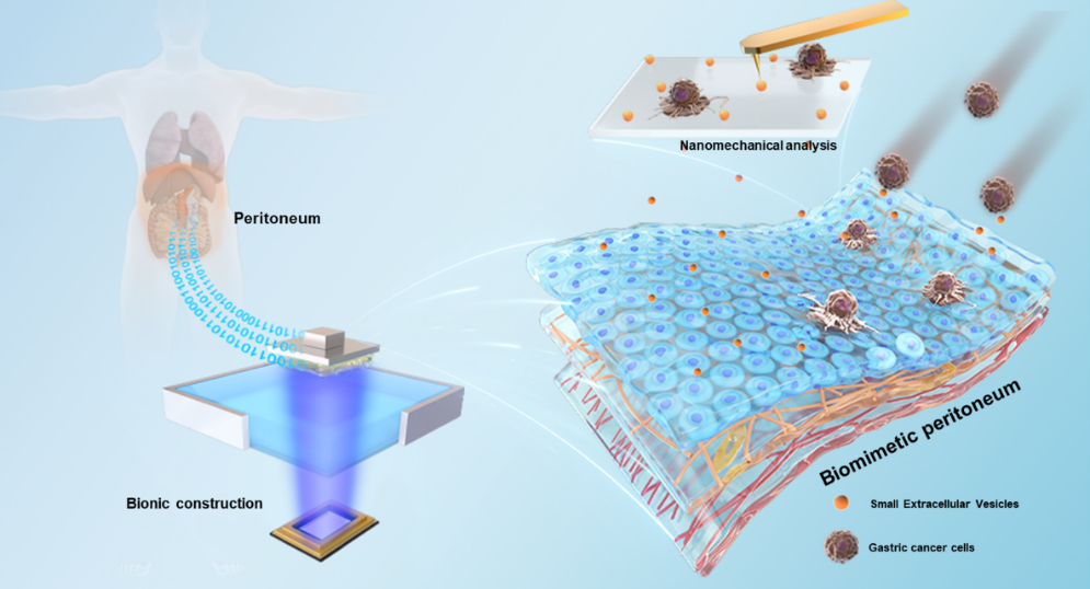 基于仿生腹膜組織,科研人員研究了小細(xì)胞外囊泡(sEVs)在腹膜轉(zhuǎn)移過程中的作用。通過對小細(xì)胞外囊泡進(jìn)行納米機械分析,科研人員發(fā)現(xiàn)其楊氏模量可以用來區(qū)分惡性臨床樣本(腹水)和非惡性臨床樣本(腹腔沖洗液)。此外,實驗證實從患者腹水中獲得的小細(xì)胞外囊泡能刺激間皮-間充質(zhì)轉(zhuǎn)化,進(jìn)而促進(jìn)腹膜轉(zhuǎn)移。研究成果表明,小細(xì)胞外囊泡的納米機械分析可以為胃癌惡性程度無創(chuàng)診斷提供一種潛在的技術(shù)手段。