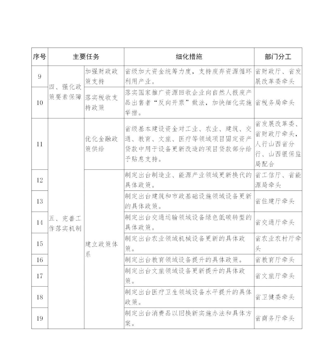 山西省推動大規(guī)模設(shè)備更新和消費(fèi)品以舊換新實(shí)施方案