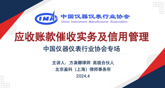 為進一步助力行業(yè)企業(yè)做好應收賬款管理,降低經(jīng)營風險,提升經(jīng)營效率和能力,4月26日上午,由中國儀器儀表行業(yè)協(xié)會、北京盈科(上海)律師事務所聯(lián)合舉辦的“2024年度儀器儀表行業(yè)首期培訓班--應收賬款催收實務和信用管理”圓滿舉辦。本次培訓班為線上形式,吸引了儀器儀表行業(yè)企業(yè)的近260名學員參加,中國儀器儀表行業(yè)協(xié)會副秘書長鄭朝松出席此次培訓活動并致辭。