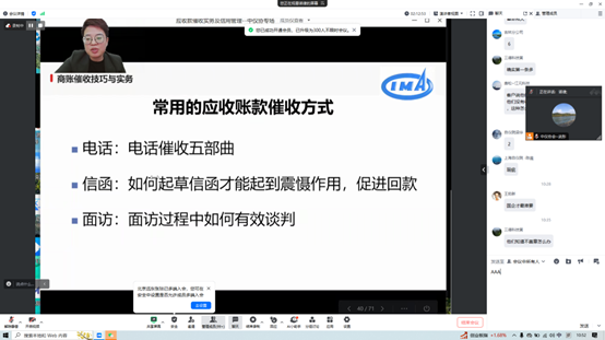 授課直播間氛圍熱烈,學員與授課老師頻頻互動交流,咨詢在業(yè)務開展中實際糾紛的化解策略。授課老師針對賬款催收中訴訟手段和非訴訟手段的適用場景進行細致解答。學員紛紛表示,培訓內(nèi)容切中企業(yè)痛點,突出應收賬款催收技巧實效性,有助于提高企業(yè)運營效率,降低壞賬風險。
