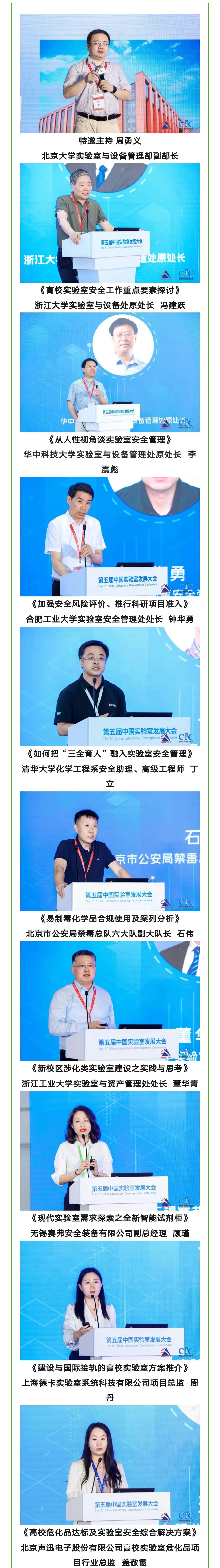 本屆高峰論壇特邀數位領域內的權威專家發表主題演講,深入分析了實驗室安全及?;饭芾淼默F狀與挑戰,分享了前沿技術與管理經驗。其中,浙江大學實驗室與設備處原處長馮建躍、華中科技大學實驗室與設備管理處原處長李震彪、合肥工業大學實驗室安全管理處處長鐘華勇、清華大學化學工程系安全助理、高級工程師丁立、北京市公安局禁毒總隊六大隊的副大隊長石偉以及浙江工業大學實驗室與資產管理處處長董華青分別從不同角度出發,為在場聽眾提供了高質量的學術報告和實踐案例分析。