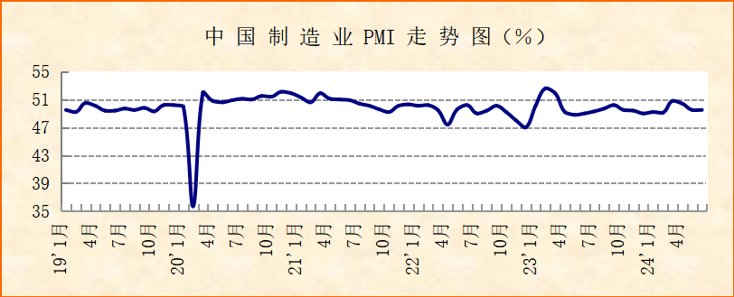 中國物流與采購聯(lián)合會(huì)、國家統(tǒng)計(jì)局服務(wù)業(yè)調(diào)查中心發(fā)布的2024年6月份中國制造業(yè)采購經(jīng)理指數(shù)(PMI)為49.5%,與上月持平。從分項(xiàng)指數(shù)變化來看,生產(chǎn)端穩(wěn)中有增,新動(dòng)能加快增長(zhǎng),微觀主體活力有所改善,原料成本壓力短期回落,經(jīng)濟(jì)運(yùn)行整體穩(wěn)定。但市場(chǎng)需求不足問題需進(jìn)一步重視。