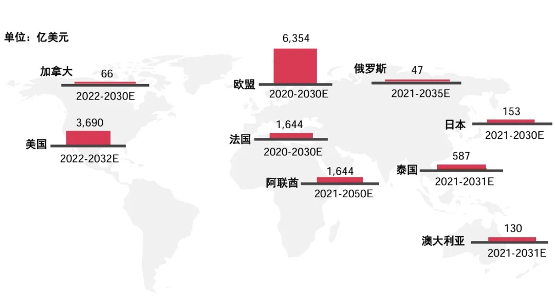 海外主要國家新能源投資規(guī)模對比