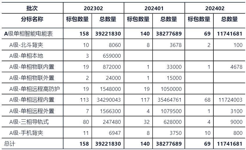 A級單相表預計至少有68家企業中標,最多有1家企業能中2包;
