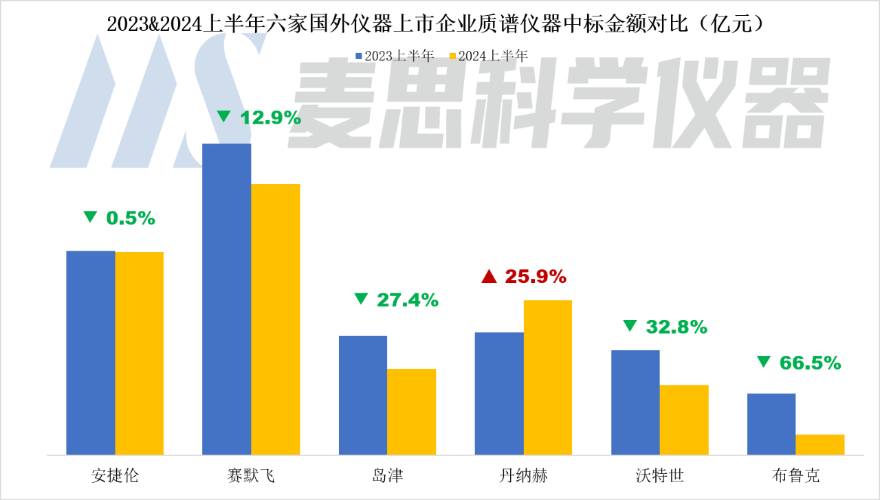 麥思研究院近期對(duì)賽默飛、丹納赫、安捷倫、布魯克、沃特世和島津六家國(guó)外上市儀器企業(yè)的2024上半年度財(cái)務(wù)數(shù)據(jù)、中國(guó)市場(chǎng)中標(biāo)情況以及近期企業(yè)動(dòng)態(tài)進(jìn)行了梳理。